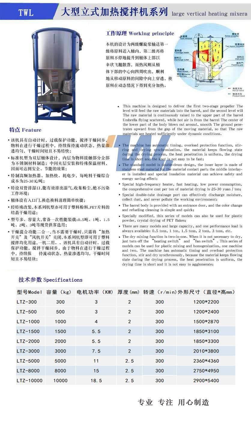 3.立式塑料搅拌机的特点: